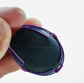 Make a bend toward the front of the stone 45 degrees, more or less, with the wires you have chosen to use for the bail.